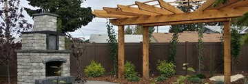 Backyard Pergola and fireplace.